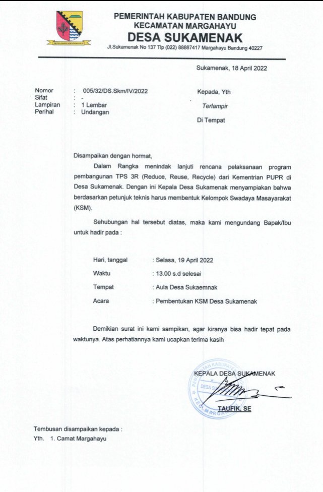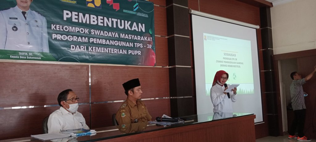 Sambutan Kepala Desa menyampaikan, yaitu menyambut baik Program TPS-3R yang terkait dengan lingkungan dari Dana PUPR, bahwa perjalan permohonan ini telah berlangsung lama, dan pada hari kamis bulan April ini ada yang Survey terkait perencanaan TPS-3 R, dan Alhamdulilah telah mendapat kesepakatan dengan proses yang sangat cepat. Utuk di ketahui bahwa Desa Sukamenak merupakan Desa Perkotaan, sehingga permasalahan Sampah sangat tinggi sekali, serta ketersediaan tempat, alat angkut dan pengelolaan sampah tersebut.