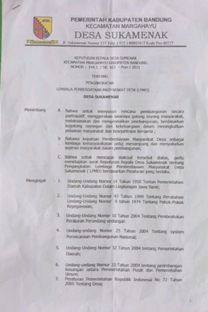 Tentang Pengangkatan Lembaga Pemberdayaan Masyarakat Desa (LPM) Desa Sukanenak.