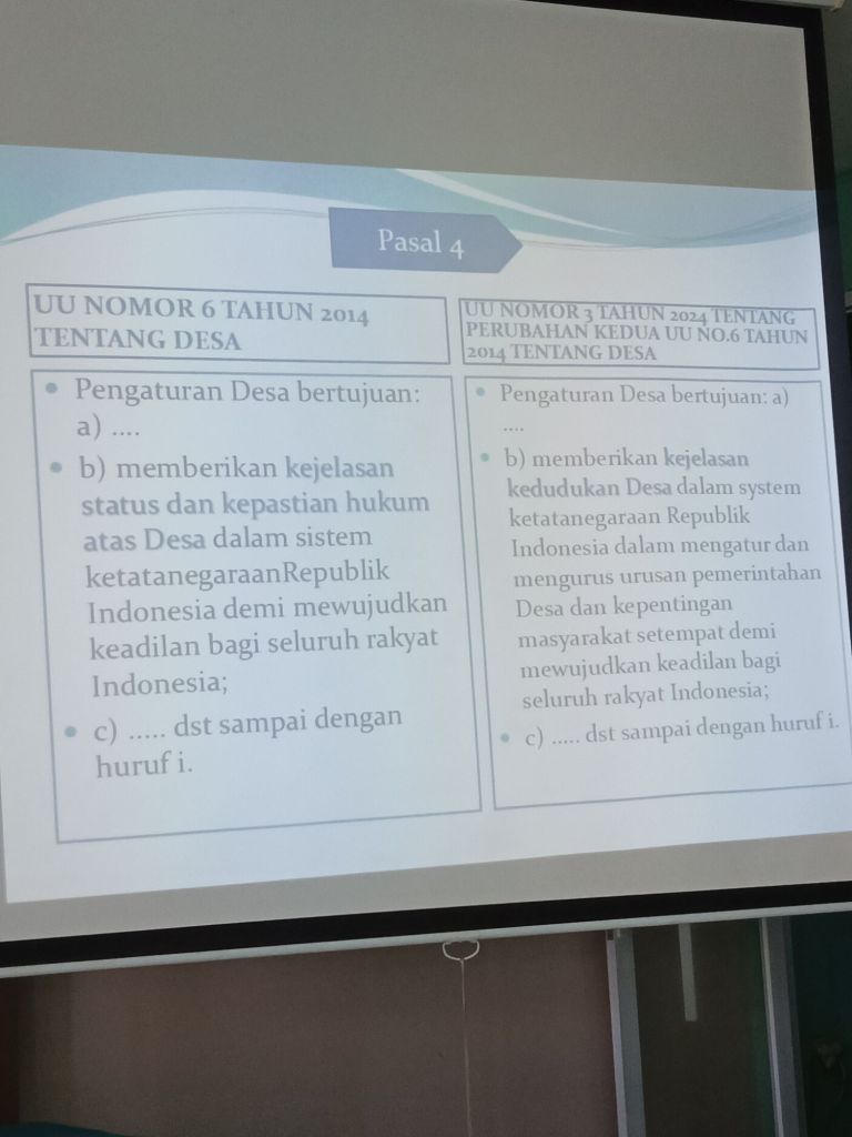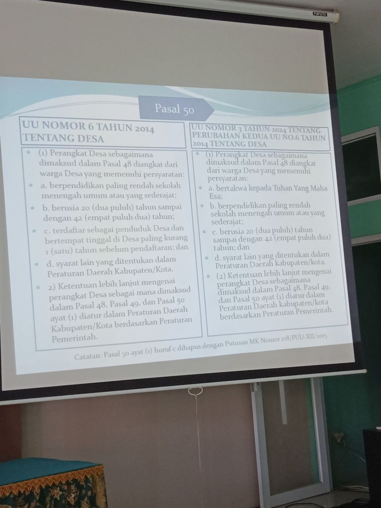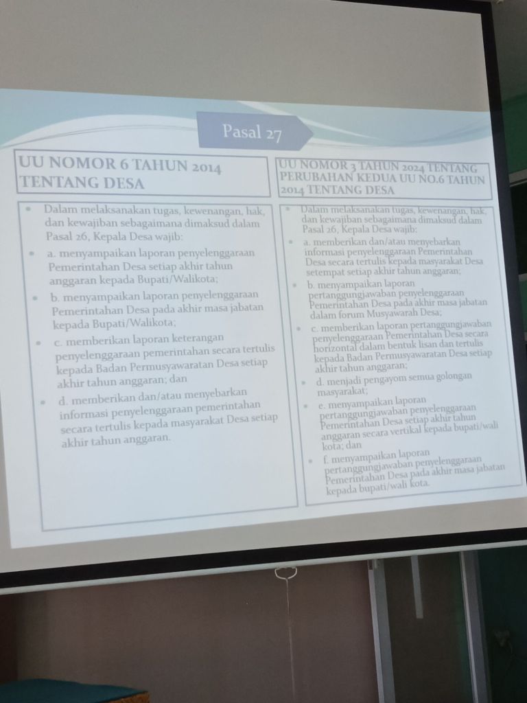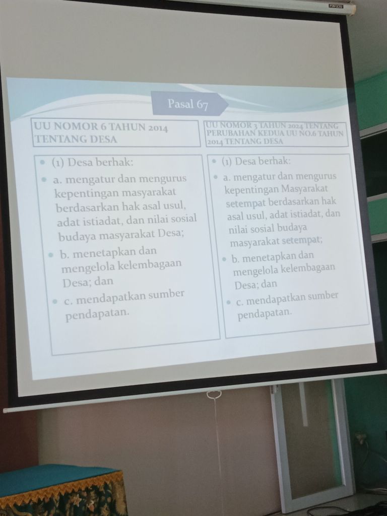 Inisiatif Sosialisasi UU No 3 Tahun 2024 adanya Undang undang Perubahan dari UU No 6 Tahun 2014, karena kita wajib mengetahui untuk memahami perubahan dalam undang undang tersebut.