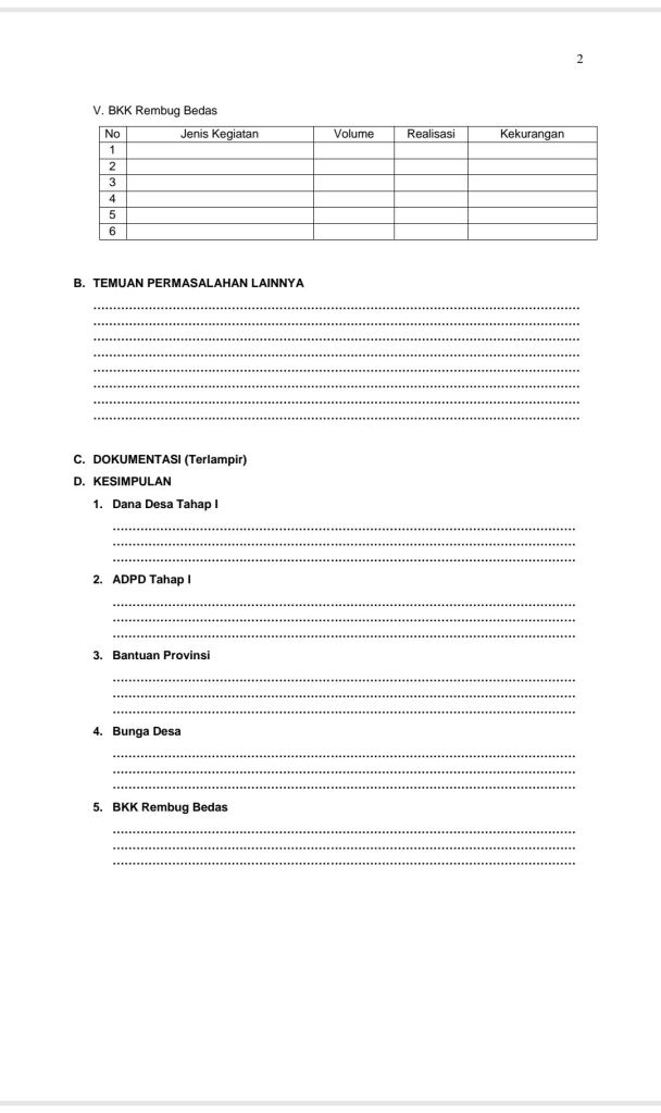 Dokumen yang harus disiapkan ada beberapa format yang akan di wawancara kan dengan pihak pihak desa terkait.